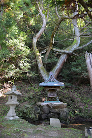 山道は、標識は整っているものの、結構なガレ場続きで歩くのに難儀する。しかも途中休憩するところも無いので意外に苦戦する。ゼイゼイいいながらやっと長岳寺奥の院の道標まで来た。しかしそれらしき堂宇も見当たらない。不動明王の石像といくつかの石碑が木立の間に見えるだけだ。