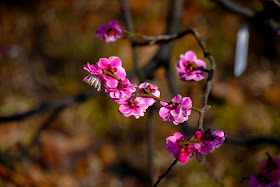 毎年2月末から3月初旬が梅の見頃となる。今年は厳冬の影響で開花が遅れているが、24日のこの日は久しぶりの好天で、寒さもやや緩み、梅が六分咲きであった。その割には人出も限られていて、都心の名所にありがちな、人でごった返し、花を見に来たのか、人を見に来たのかわからないような状態でもなく、ゆったりと「花見」を楽しむことができた。ここは先述のように紅梅が多く、梅園全体が紅白のグラデュエーションで美しく彩られる。あたりに馥郁たる梅の香が漂い春の訪れを感じる一日であった。