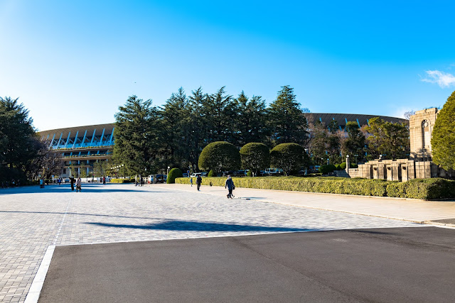 いよいよ今年は2020TOKYOオリンピック/パラリンピック開催の年だ。年末に新装なった新国立競技場(オリンピックスタジアム)を観に行ってきた。設計コンペで、すったもんだした競技場がついに竣工を迎えた。場所は明治神宮外苑。神宮外苑は言うまでもなく明治天皇を祀る明治神宮の敷地である。そこは聖徳記念絵画館を中心に幾何学的な洋風庭園として設計された。敷地内には憲法記念館(現在の明治記念館)も設けられた。しかし、現在、その外苑敷地内には所狭しとスポーツ競技施設が軒を接して建て込んでいて、とても幾何学的な整然さを保った洋風庭園とは言いがたい佇まいだ。どうしてこんなことになったのか、経緯はいろいろあるようだがとにかく、国立競技場(正確には文部省に移管されたので明治神宮の敷地では無いそうだ。お役所的な定義だが)、秩父宮ラグビー場、神宮野球場、第二神宮球場、テニスコートといったスポーツ施設が立ち並ぶ一大スポーツ公園となっている。